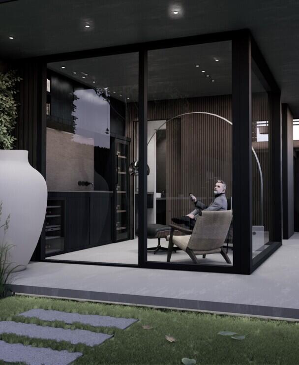 Naast de tuin en buitenkeuken wordt er een exclusief bijgebouw toegevoegd aan het perceel. Dit bijgebouw zal fungeren als een luxe ontspanningsruimte met een cigarroom en een hoogwaardige sauna. De afwerking wordt met de grootste zorg uitgevoerd, waarbij gebruik wordt gemaakt van hoogwaardige materialen en innovatieve technieken om een sfeer van rust en exclusiviteit te creëren.