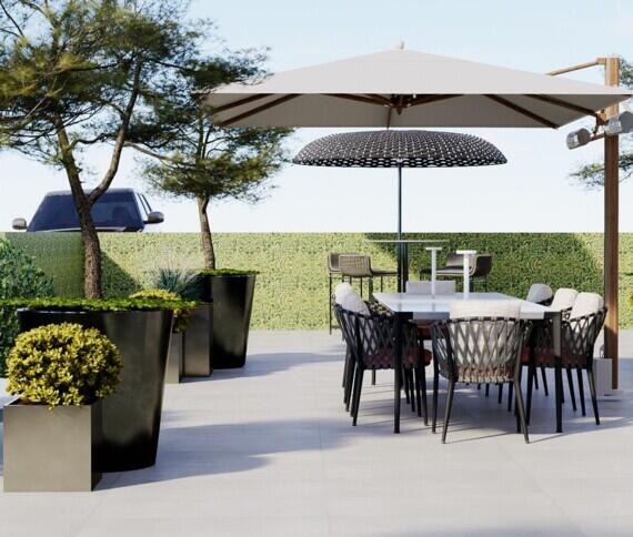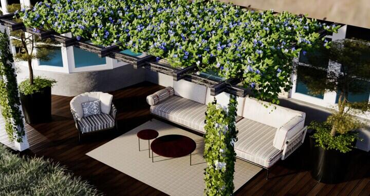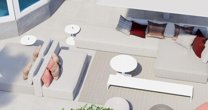 De sfeer van deze villa wordt gekenmerkt door een harmonieuze mix van klassieke, moderne en landelijke elementen. Bij het ontwerp is bewust gekozen voor strakke meubels met een vleugje klassieke stijl, als een knipoog naar de architectuur. Met zorgvuldige aandacht zijn verschillende hoeken gecreëerd, elk met een eigen functie: een plek om te ontspannen, te dineren, gezellig te tafelen of heerlijk te genieten van de zonnestralen. In de 3D-visualisaties wordt de toekomstige situatie tot in detail beschreven. Alle plekken waar meubelcomposities voor zijn bedacht, zijn te zien. Alle producten zijn te vinden op onze website.